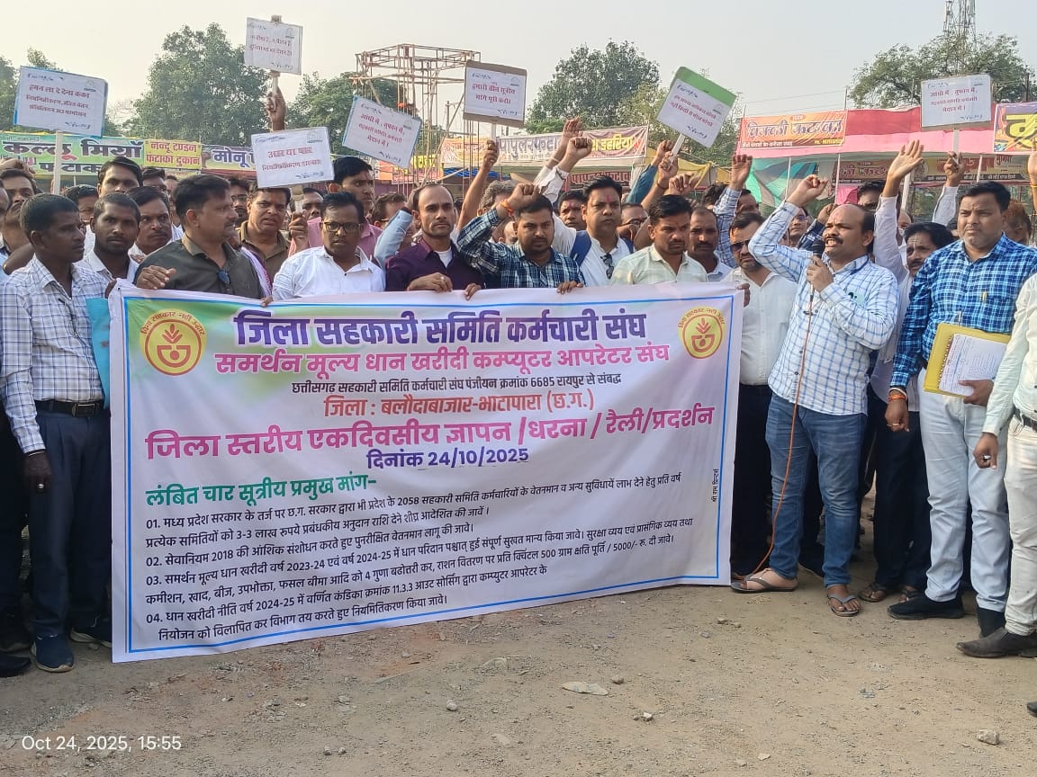 प्रथम दस्तक लेटेस्ट न्यूज *सहकारी समिति कर्मचारी संघ, जिला बलौदाबाजार-भाटापारा (पंजीयन क्रमांक 6685 चार सूत्रीय मांगों को लेकर कर्मचारियों का धरना एवं ज्ञापन रैली। October 24, 2025 प्रथम10तक NEWS No Comments नरेंद्र साहू जिला रिपोर्टर बलौदाबाजार, दिनांक 24/10/2025 – सहकारी समिति कर्मचारी संघ, जिला बलौदाबाजार-भाटापारा (पंजीयन क्रमांक 6685) के बैनर तले आज जिला मुख्यालय में *चार सूत्रीय मांगों* को लेकर एक…