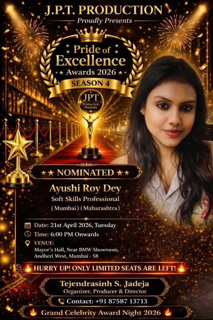 **[AWARDEE Ayushi Roy Day] को मिलेगा “Pride of Excellence Awards 2026 – Season 4” में सम्मान, उपलब्धियों का होगा गौरवपूर्ण सम्मान**