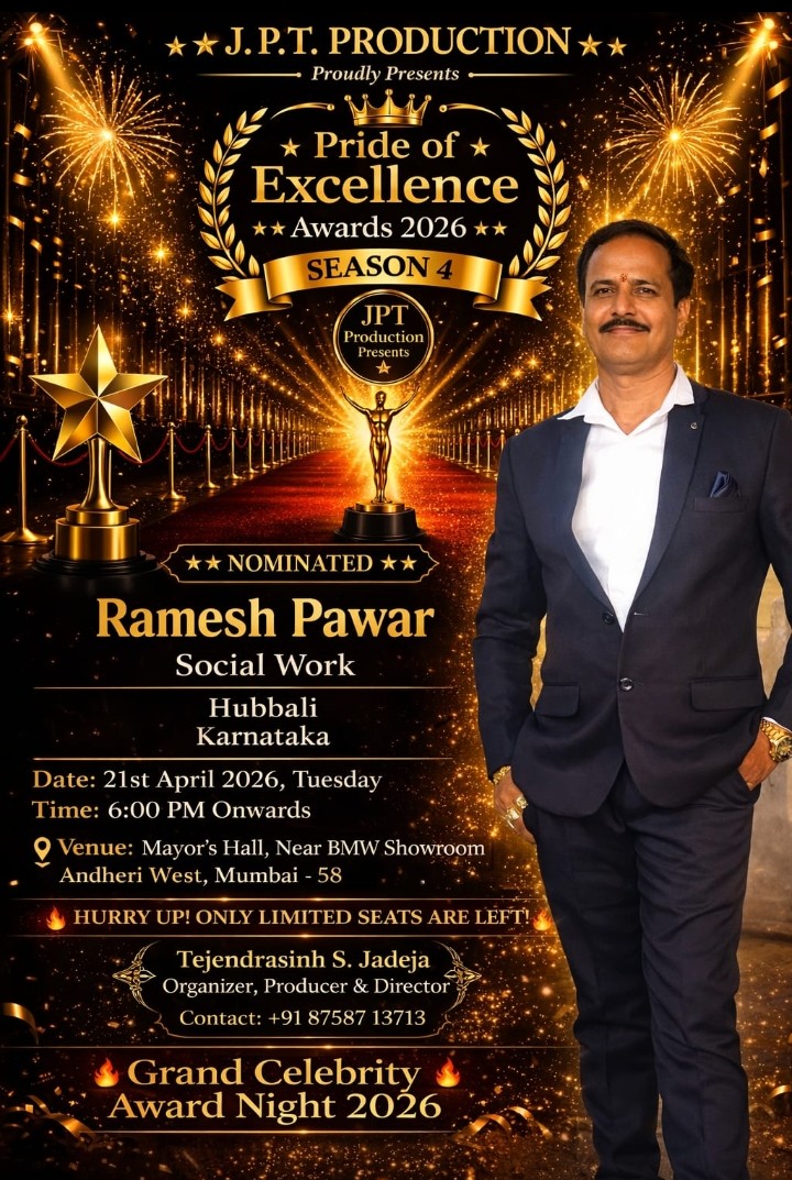 📰 **[AWARDEE Ramesh Pawar] को मिलेगा “Pride of Excellence Awards 2026 – Season 4” में सम्मान, उपलब्धियों का होगा गौरवपूर्ण सम्मान**