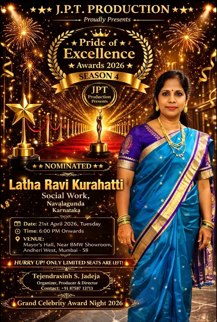 📰 **[AWARDEE Latha Ravi Kurahatti] को मिलेगा “Pride of Excellence Awards 2026 – Season 4” में सम्मान, उपलब्धियों का होगा गौरवपूर्ण सम्मान**